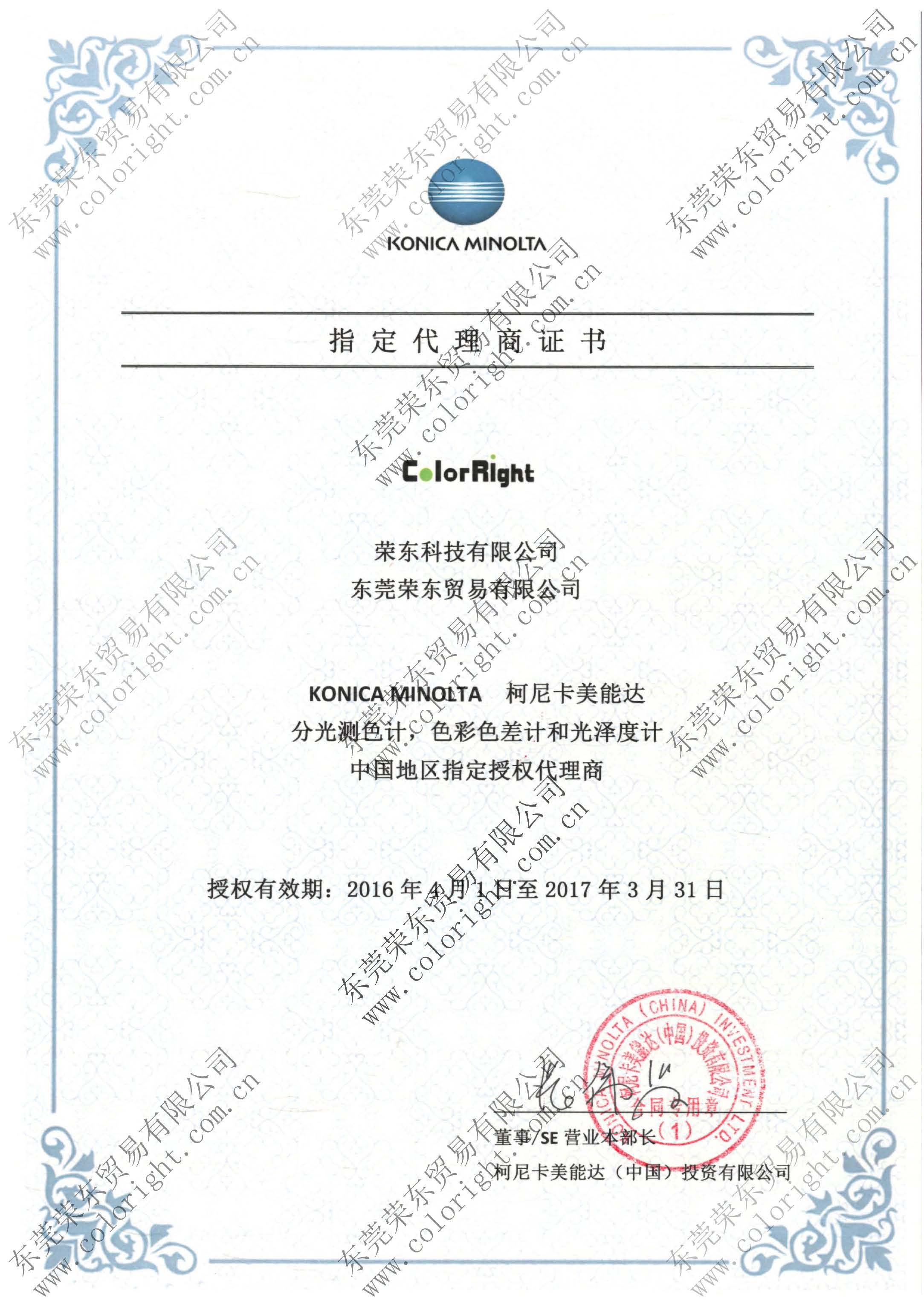 我司荣获2016年度美能达指定代理商证书,成为中国地区指定授权代理商。希望能给各位客户带来更好的服务。