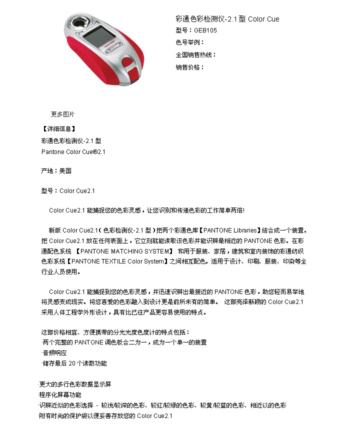 >Color CueGEB105彩通色彩检测仪-2.1型