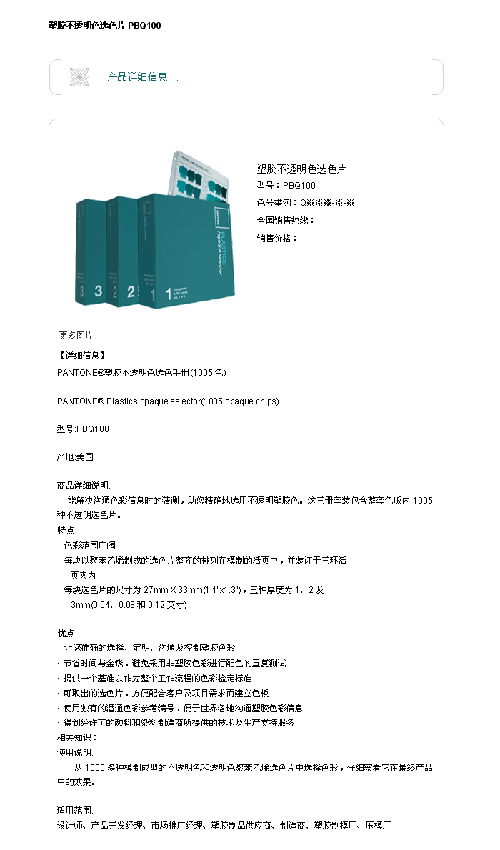 >PBQ100塑胶不透明色选色片