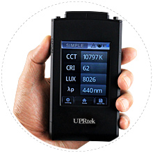 在Simple(简要)模式下,直接读取CCT(相关色温)、CRI(显色指数)、LUX(照度)、λP(主峰波长)。