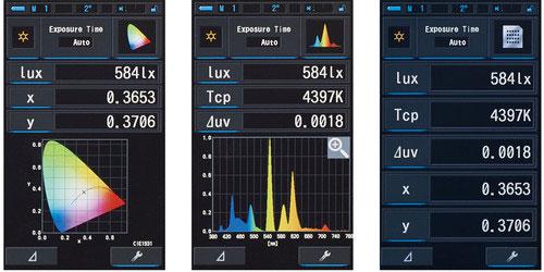 持续光照:1 ~ 200,000 lx,1,563 ~ 100,000 K (色度显示需要5 lx或以上)